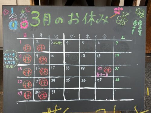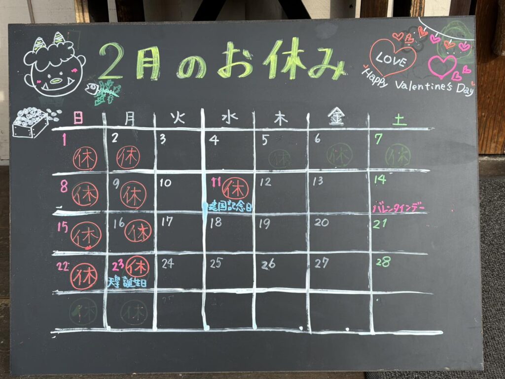 2月のお休みのお知らせです。